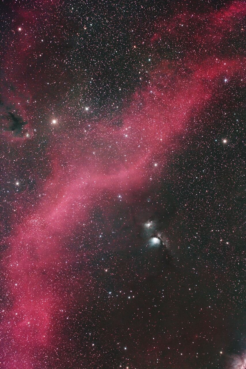 バーナードループはとても大きなガス星雲の広がりで、オリオン座を包むように存在しています。Hα光で輝いている為肉眼で見る事はできません。