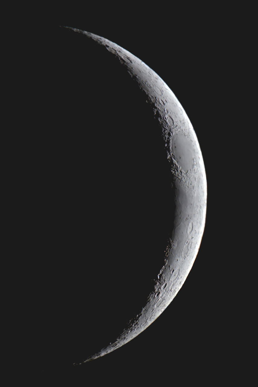 昨夕は綺麗に三日月が夕空に浮かんでおりましたので、自宅天文台で撮影してみました。シーイングも余り良くなかったですが、記念撮影程度で失礼致します。