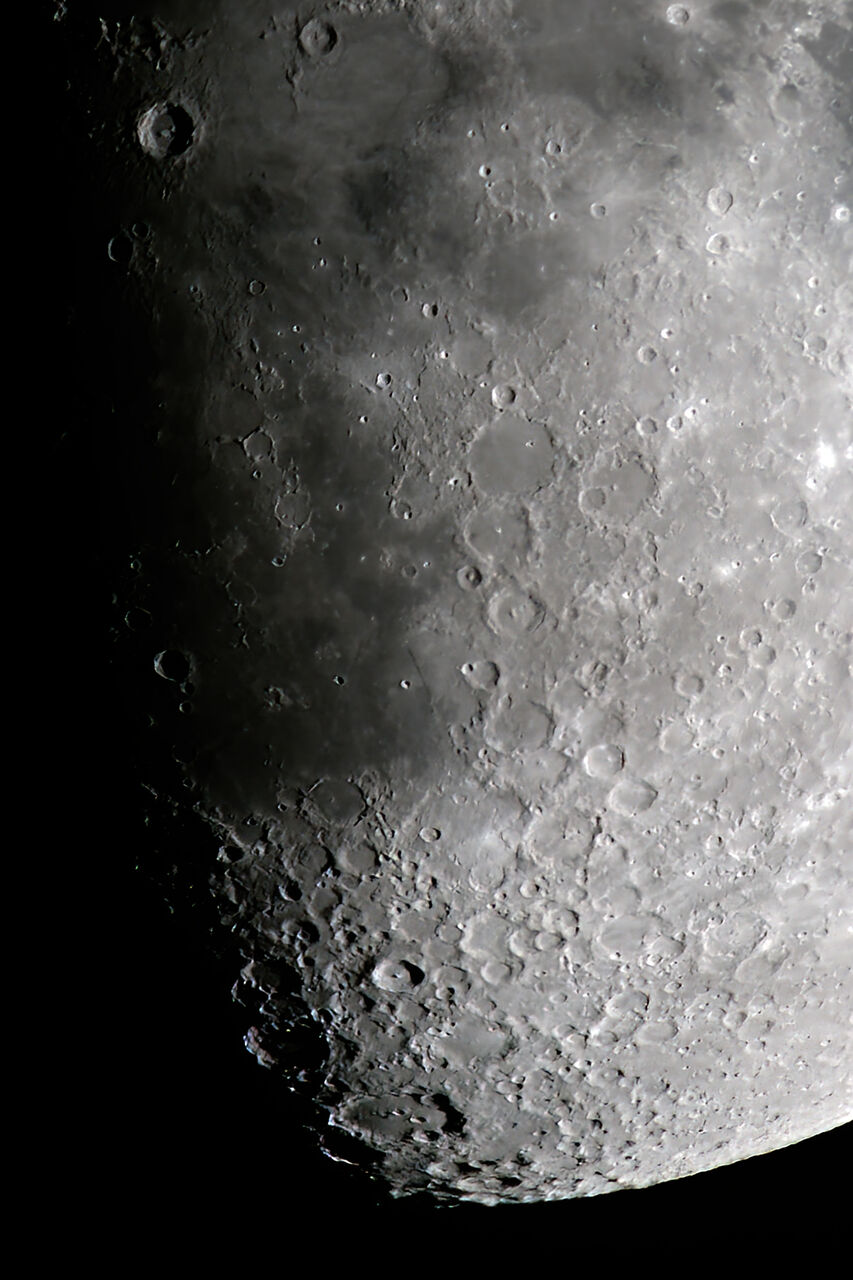 何時もの様に月面上部からトリミング拡大してみました。雨の海の直ぐ上のプラトークレーターから