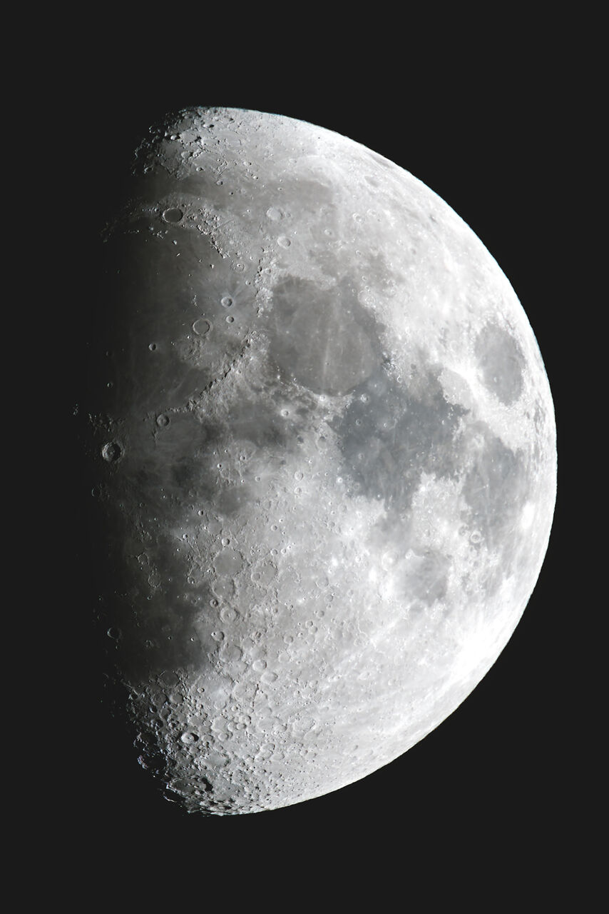 上弦の月から一日過ぎた月齢9.3のお月様ですが、この頃になると雨の海の半分が顔を出してきます。