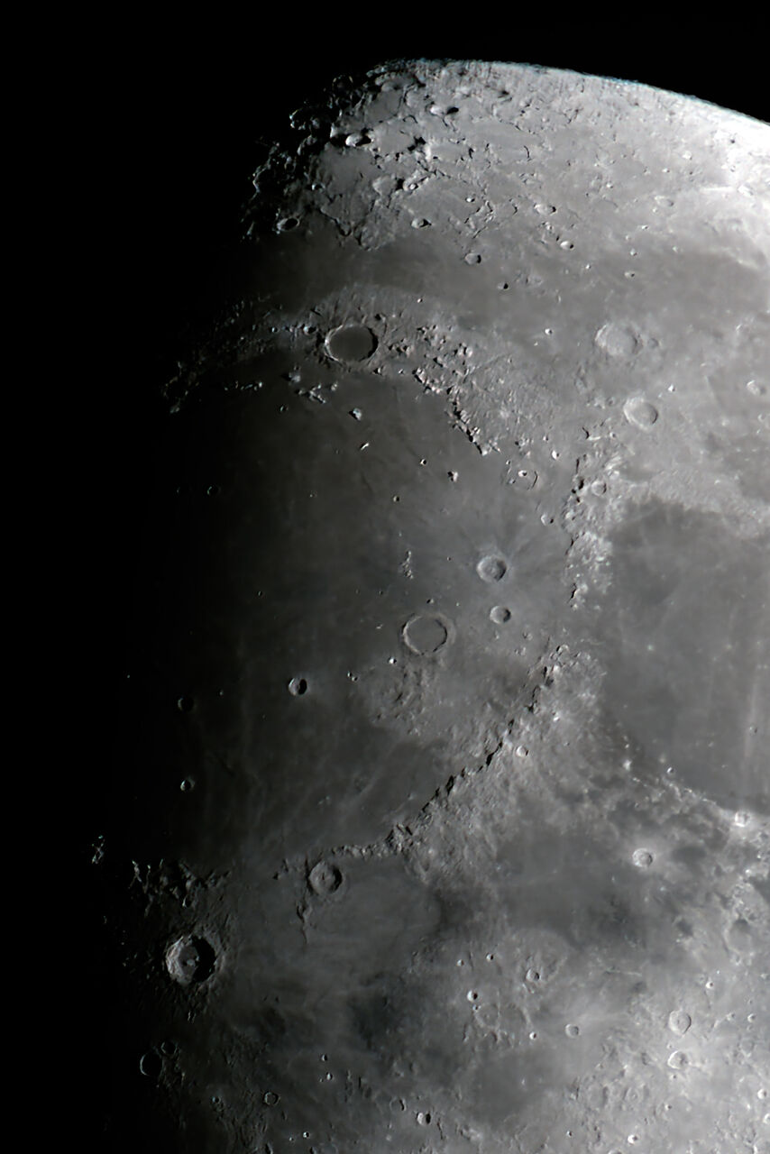 月面の下部には、コペルニクスクレーターから雲の海を挟んでティコのクレーターまでが写っております。
