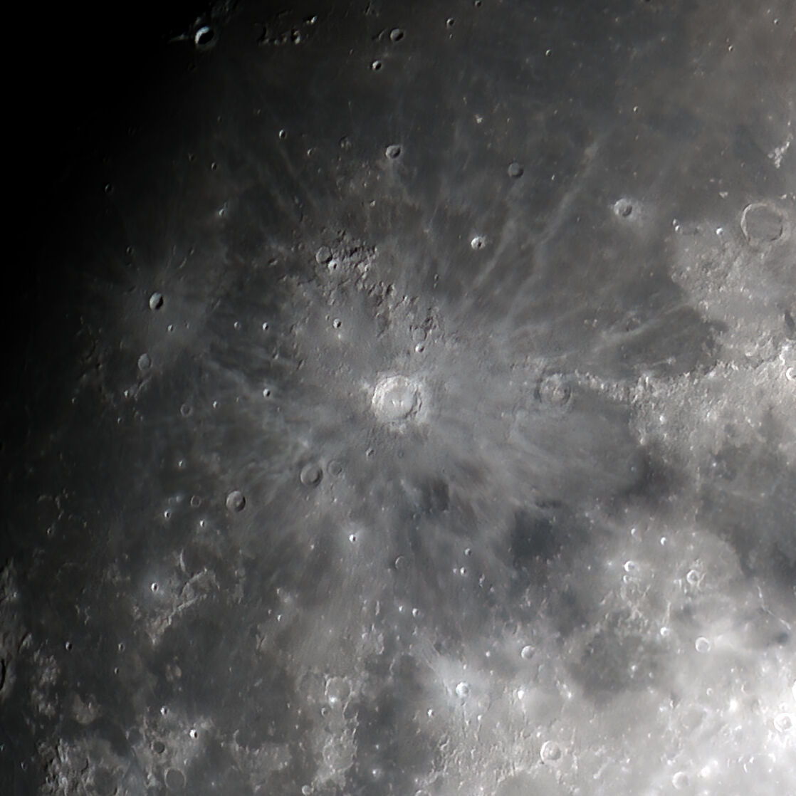 ついでにコペルニクスクレーターの光条が綺麗に見えております。