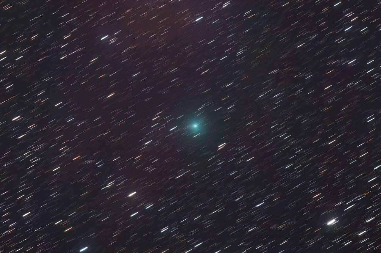 エメラルドグリーンがとても美しい彗星ですね!散光星雲との色の対比も美しいですね!