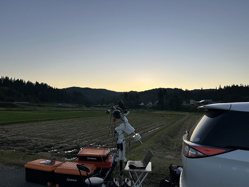 当地は西の視界が悪く山を下りて農村地帯の道端で観測しました。どうせなら私も海沿いに行きたかったですが、良い観測地を見つけたのでラッキーでした。