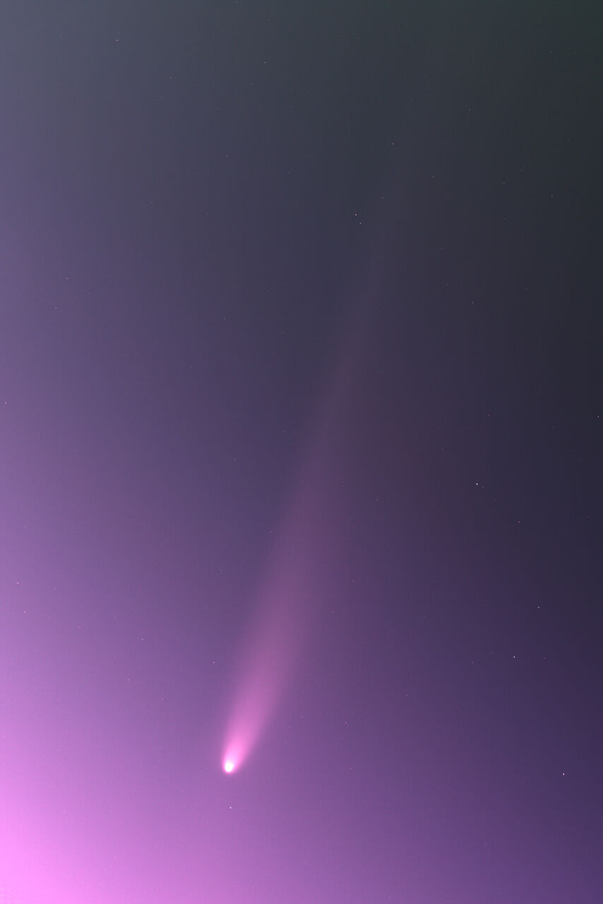 夕方の綺麗なグラデーションの中に観える彗星、幻想的で素晴らしい👍