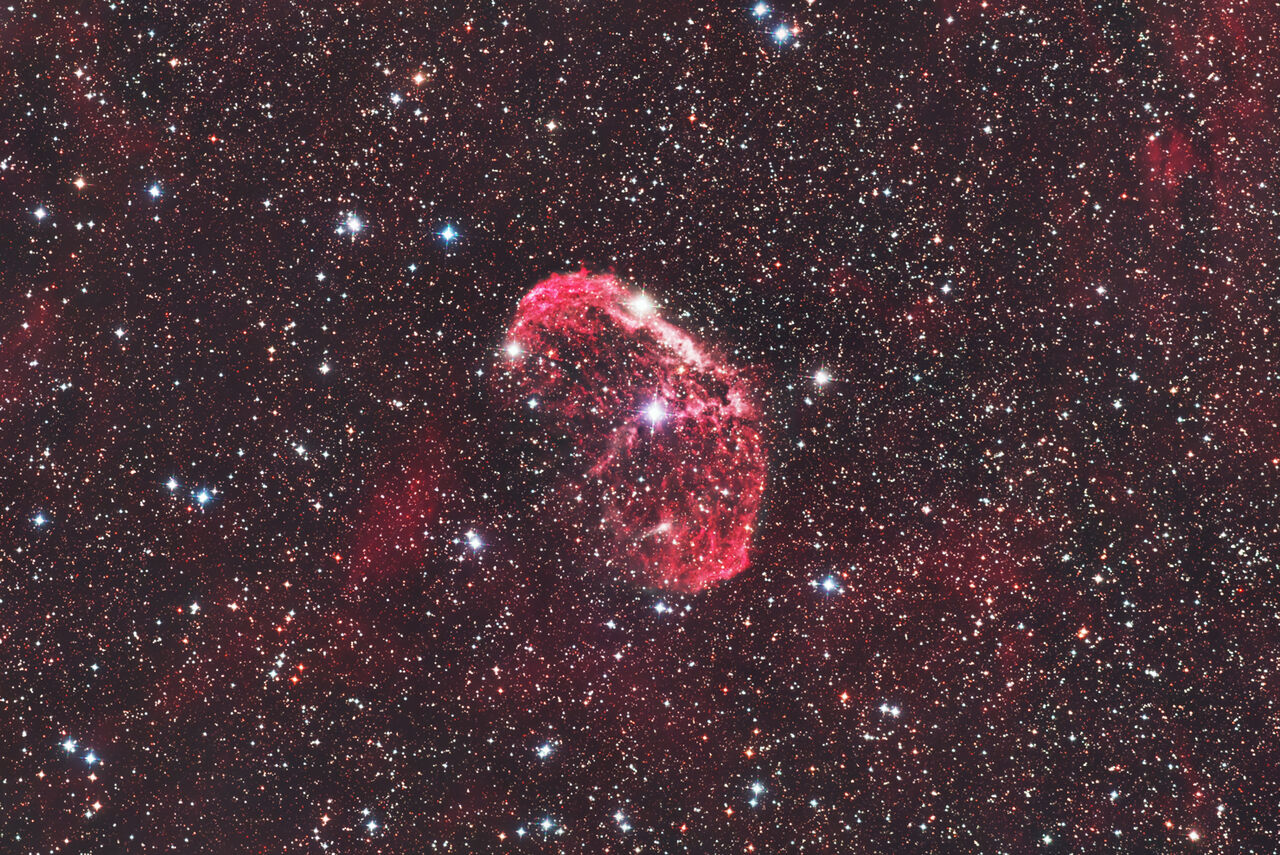 NGC6888クレセント星雲は、星雲中央に輝くウォルフ・ライエ星WR136が放出した恒星風によって形成されております。