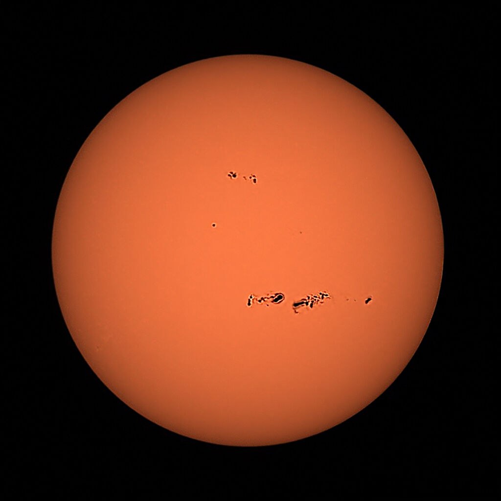 さて気になる太陽面ですが、見ごたえある黒点群が中央をやや西に移動しておりますね!DWARF3君で日曜日13時03分頃オートスタックで撮影してみました。